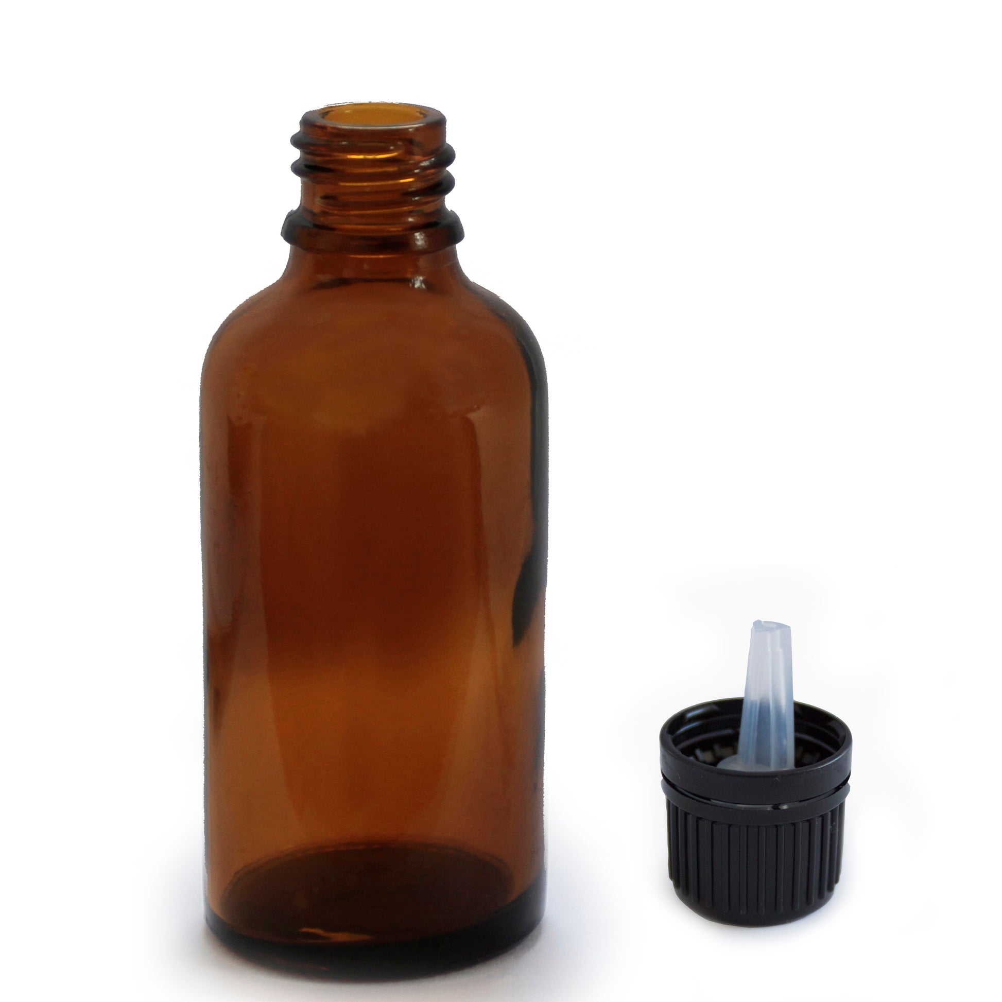50ml amber glass bottle. Suitable for storage of essential oils and aromatherapy products.